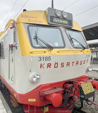 År 2013 kontaktades B:s Minnesförening av anledningen att lokaltåg i södra Sverige (Småland, Skåne m.fl.) skulle få individuella namn av folk från bygderna de åkte igenom. En kvinnlig presschef bad då ordföranden om tillstånd(!) att ge ett av tågen som trafikerade Småland och norra Skåne för - Bildsköne Bengtsson (se bilden med namnet uppe till vänster). Hans namn är ju på intet sätt skyddat som ett varumärke men organisationen (Krösatågen) ville ändå ha detta på papper, vilket de fick. Så i december 2025 dök B:s namn upp i Julkalendern (för barn) där hans namn lånats till en av rollfigurerna. En person lade då ut en bild på B på nätet och frågade om någon kände igen personen, vilket flera gjorde. En av dem skickade med en bild på tåget som nyligen tagit henne från Jönköping till Växjö och dess namn detsamma som vår huvudperson. Veckan tidigare hade föreningen via telefonsamtal fått reda på att Svenska Dagbladet i Stockholm planerade en artikel om honom med beräknad datum 21 december 2025. Om journalisterna behagat söka på nätet hade de omgående kommit till denna sidan, men så har inte skett. Vi får kanske återkomma till artikeln och faktagranska den i vetskap om att vi inte varit i blandade mer än indirekt då författaren meddelat att material från våran sida använts. Vi får de om vi finns med i källförteckningen vilket skulle öka intresset för B. | ||||||||||||||||||||||||||||||