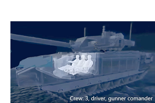 T-14 Armata is the latest model och Russian tanks and featured with new modern techinicalc details. It is the first tank in the world to have a turret without a crew. The crew is shielded within a 100 mm thick capsul inside the hull (see drawing thru link at the bottom).