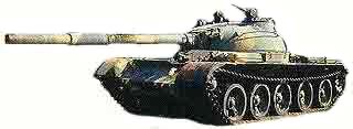 T-62 came in 1963 and was the Eastern Block's main tank weapon in the 1960s. Very like T-54/55 with a slightly broader and wider hull. The rounded turret has two hatches like the models before. The main gun had a gas-ejector in the middle and the wheels were even divided. It has an increased speed of firing (one shell every fifteen seconds) compared to the forerunners and a rocket-launching feature from the gun for anti-tank purposes. T-62 was a very relyable and robust combat vehicle without sophisticated abilities and was exported widely and still in duty in some places in year 2000. Out of service in the USSR in 1980.